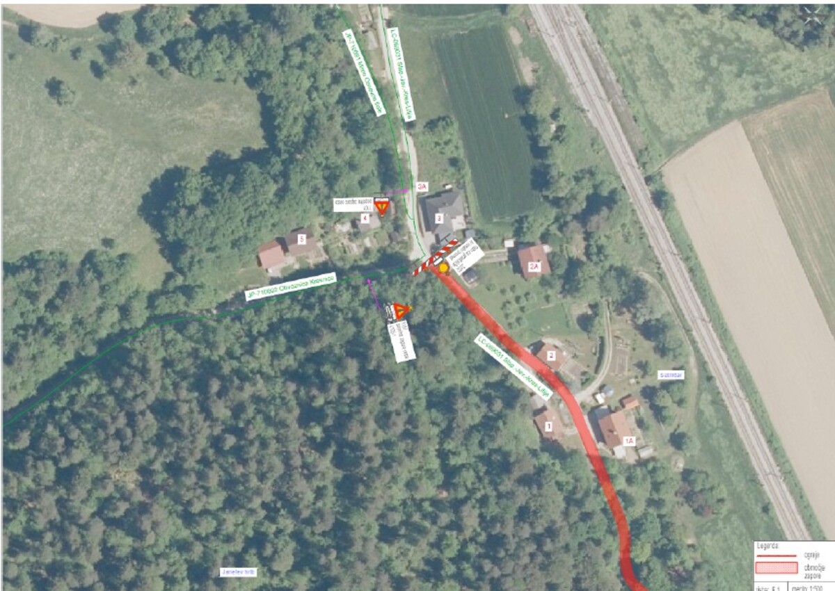 Od torka, 14. 4. 2026, do nadaljnjega bo zaradi priprave vozišča na asfaltiranje vzpostavljena popolna zapora ceste na odseku od hišne številke Kresnice 2A (križišče pri obvoznici) do hišne številke Kresnice 1B (nova čistilna naprava).