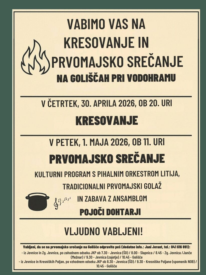 Kresovanje in prvomajsko srečanje na Goliščah